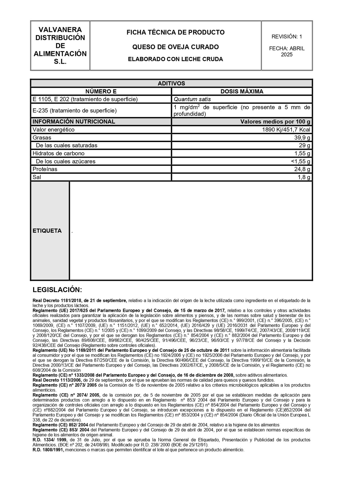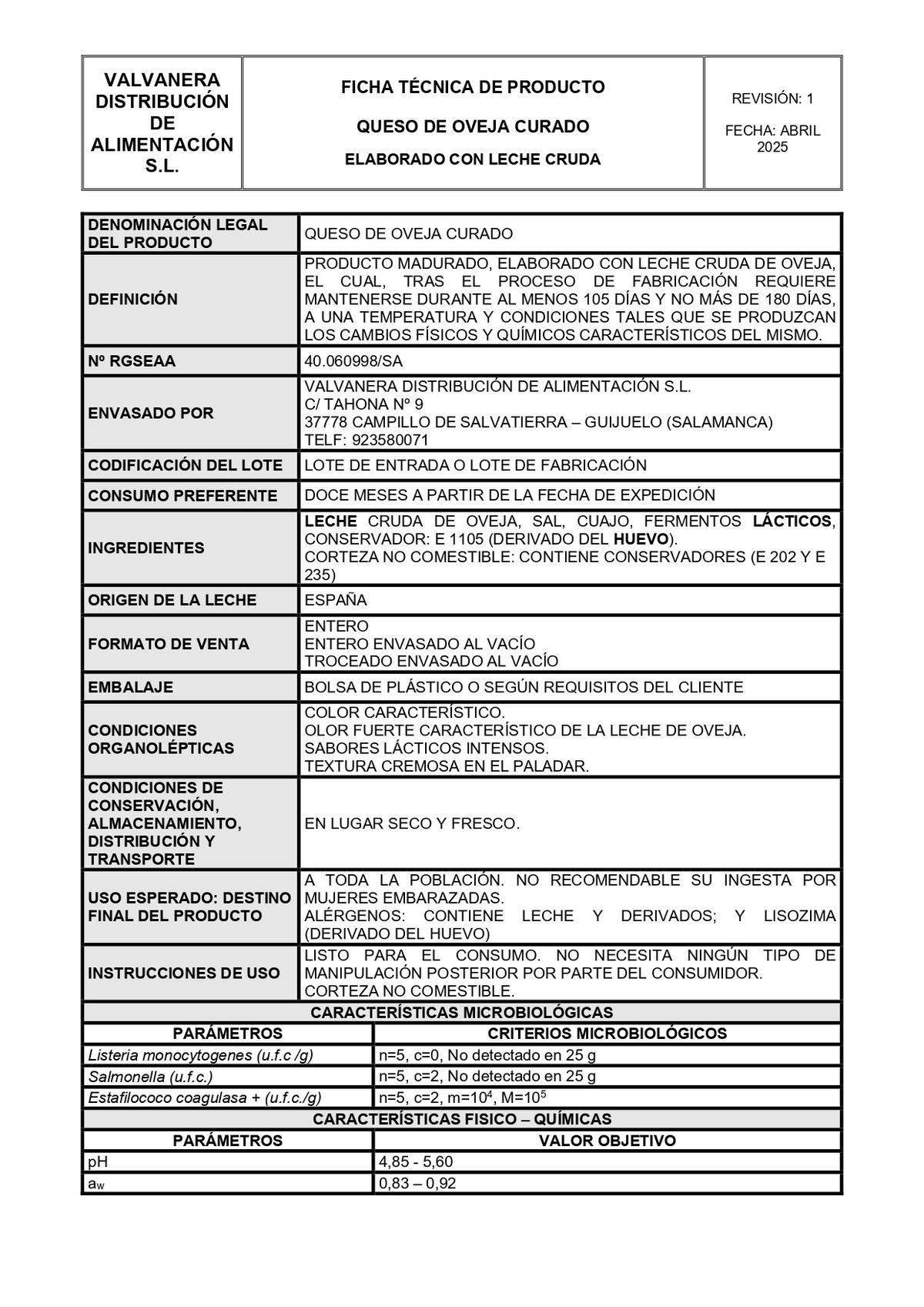 El queso curado de oveja puede conservarse hasta 3 meses en refrigeración. Manténgalo envuelto para preservar su sabor y textura.