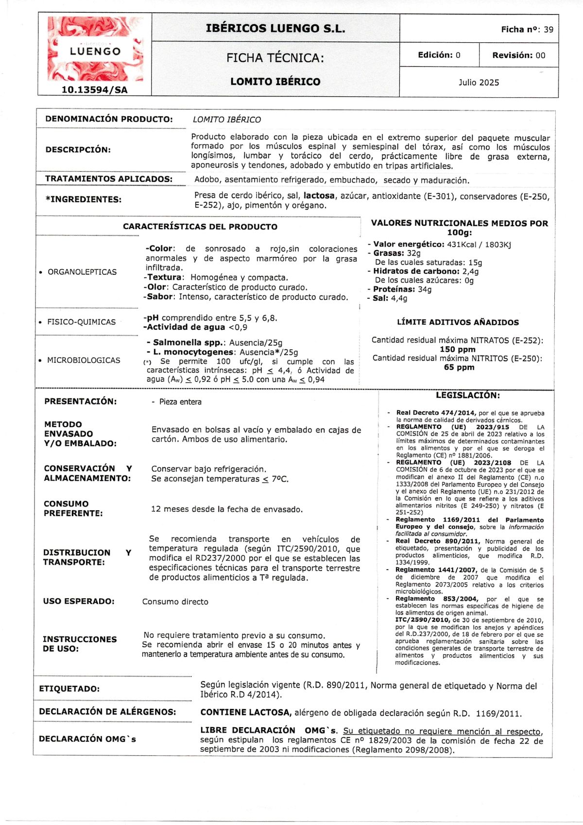- Tipo: Embutido ibérico